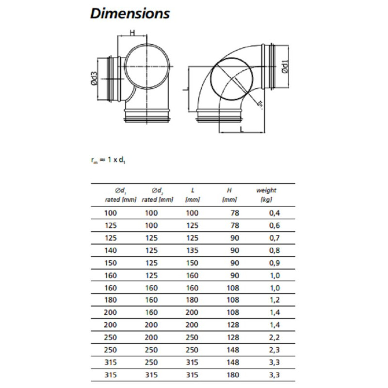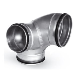 Ventilationsböj 90° med hål på sidan för ventilationsrengöring. Kan även användas som T-rör