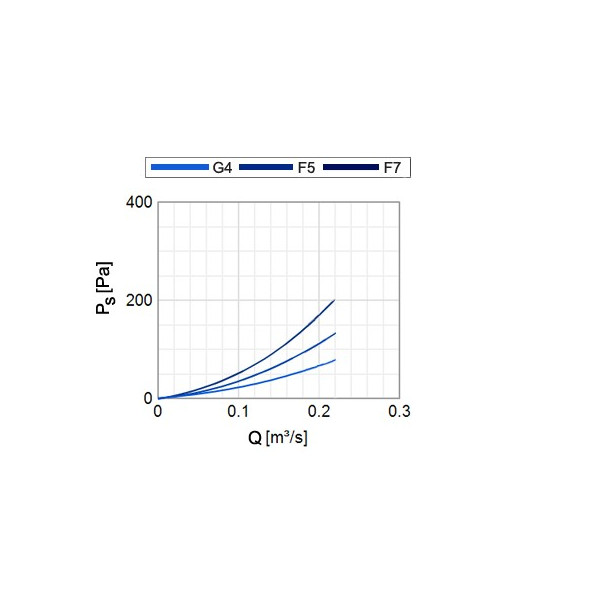 FLF kan förses med tre olika påsfilter i följande filterklasser: G4, F5 och F7. (Filter beställs separat).