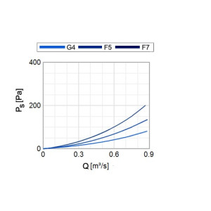 FLF kan förses med tre olika påsfilter i följande filterklasser: G4, F5 och F7. (Filter beställs separat).