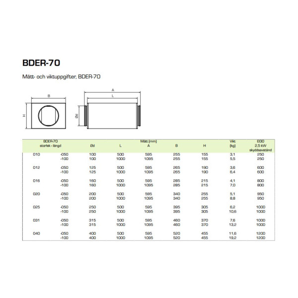 Ljuddämpare 100 L100cm Rektangulär BDER-70