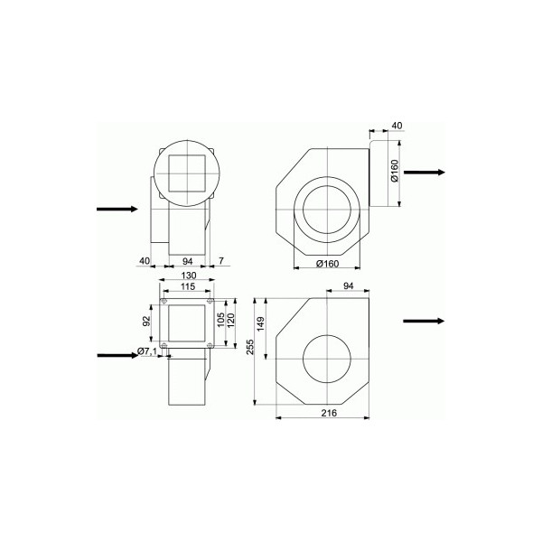 • Fläkthöljet är tillverkat av galvaniserad stålplåt.