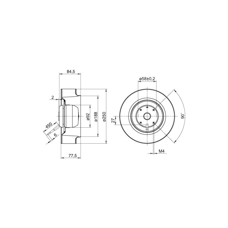 Leveransen innehåller komplett motor med fläkthjul och kabel 450 mm, samt elschema.