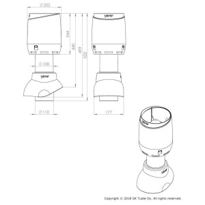 Användning: Anslutningsrör mellan avloppsluftare eller KTV ventilationsats (med adapter) och ett Ø110 mm avloppsrör.